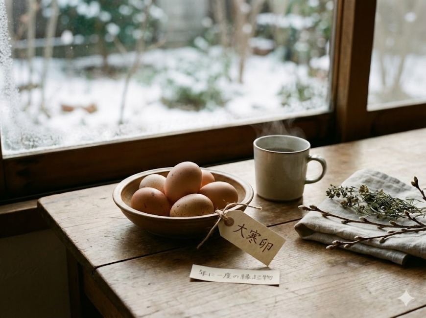 大寒卵(だいかんたまご)とは、二十四節気の「大寒」の期間中に産み落とされた鶏の卵を指します。一年で最も寒さが厳しいこの時期の卵は、滋養が豊富で特別な力が宿ると古くから信じられてきました。