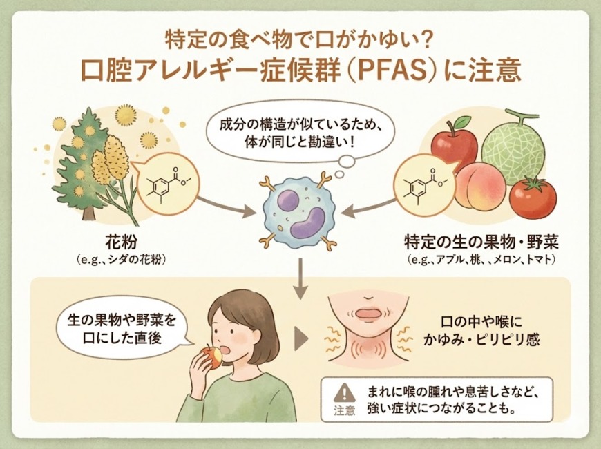 特定の食べ物で口がかゆい?口腔アレルギー症候群(PFAS)に注意