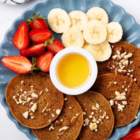 お好みのプロテインを使って、ふんわりとした食感のパンケーキが作れます。