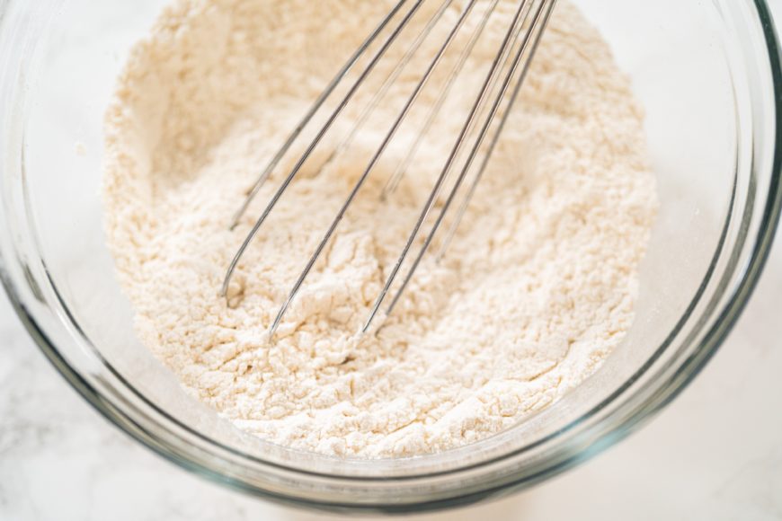 プロテインパウダーはダマになりやすいため、水分を加える前に他の粉類としっかり混ぜ合わせましょう。粉同士を均一に混ぜておかないと、焼き上がりの口当たりが悪くなるだけでなく、膨らみのムラにもつながります。
