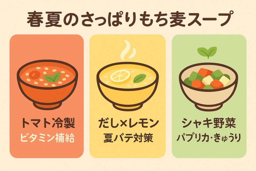 ここでは季節別のもち麦スープを以下の観点から紹介します。